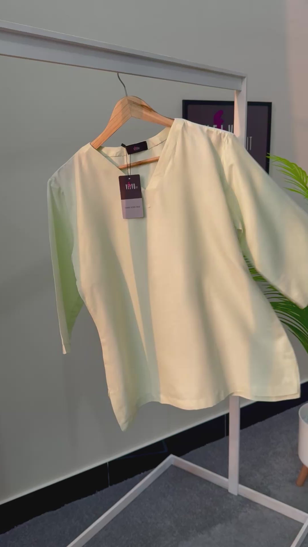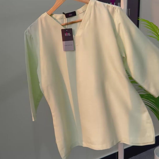 Top with imported Cotton-silk blend with light pista colour gives a subtle shine .