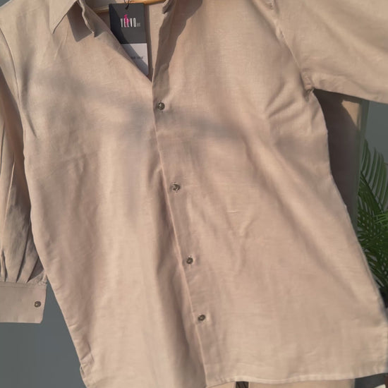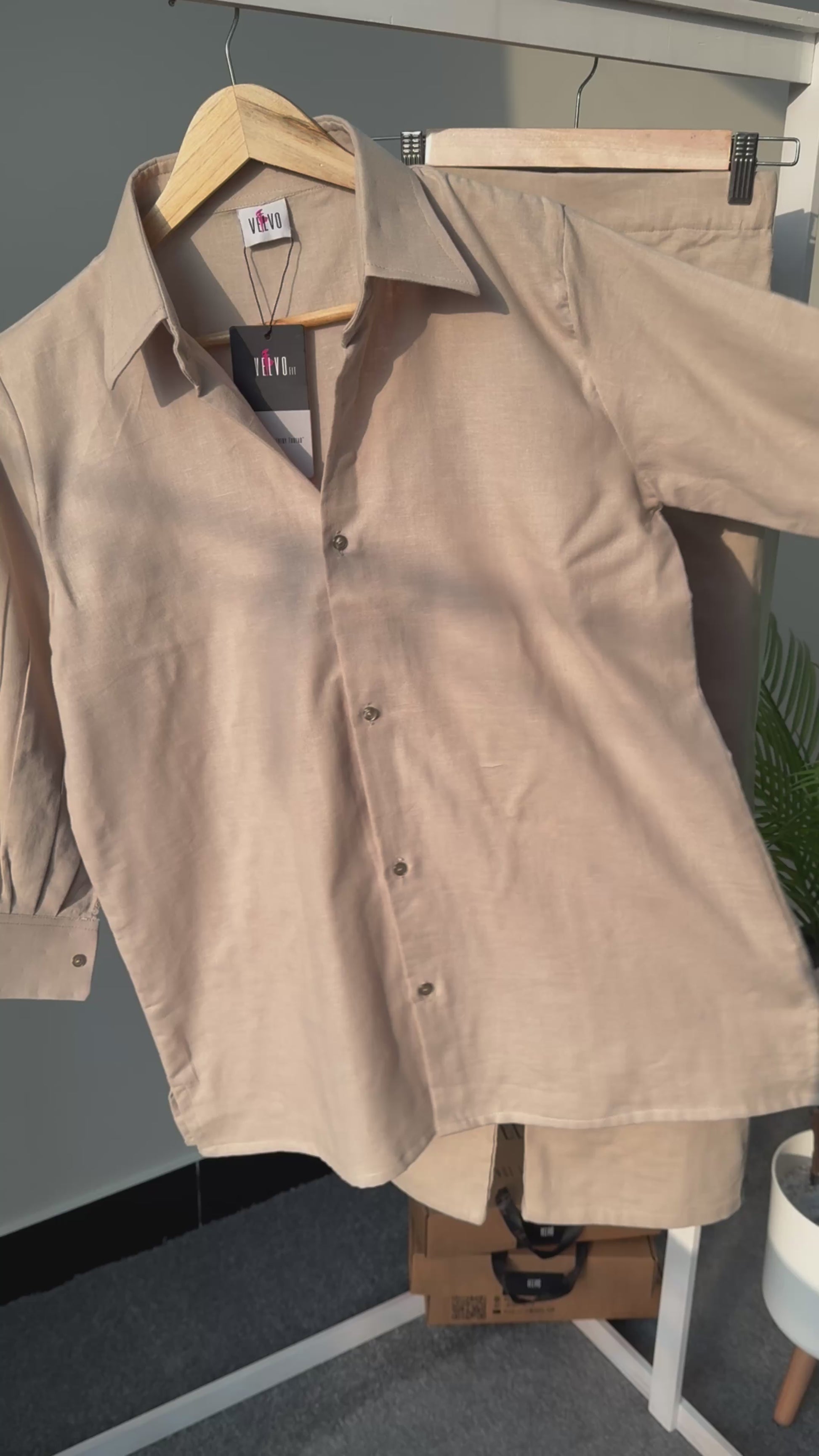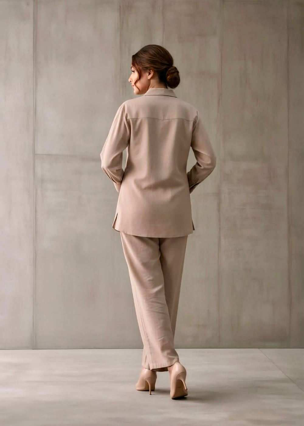 Co-ord set with imported soft winter slightly textured cotton with soft beige nude sand tone colourgives modern vibe.